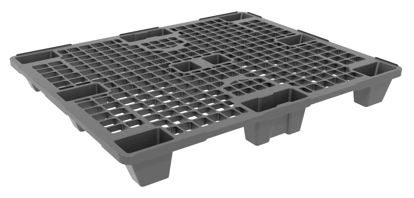 Lightweight nestable pallet ideal for export. Manufactured in black recycled material.