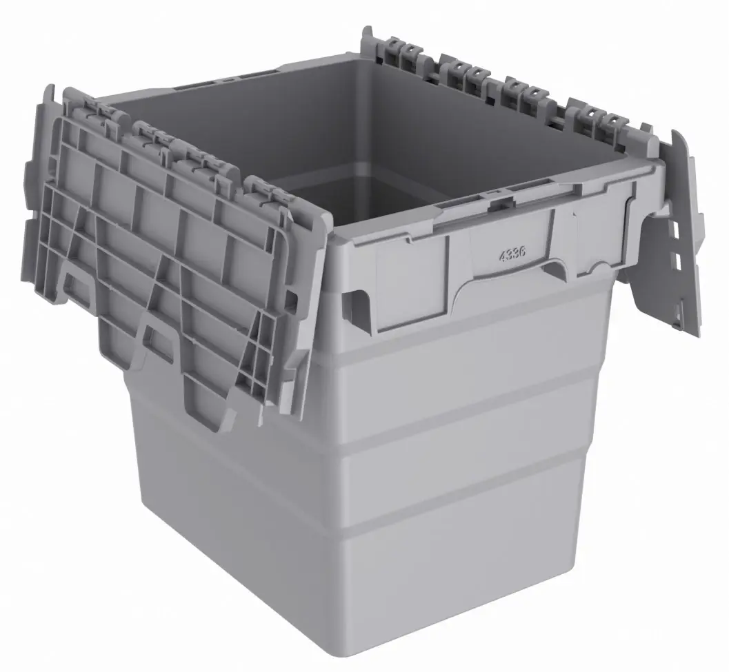 Attached Lid Containers in many sizes and styles for shipping, picking and storage.  Ideal for applications in distribution, grocery and general manufacturing, these containers deliver long-lasting, cost-saving performance.